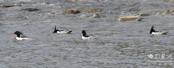 荆楚网(湖北日报)(通讯员 于向景 唐彦龙)11月3日,端空湿地工作人员在对越冬水禽秋季迁徙期进行研究时,在端空湿地西部发现了5只中华秋沙鸭。他们漂浮在水流湍急的河水中,嬉戏、捕鱼,但感觉很不舒服。