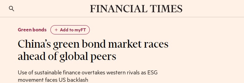 小编:英国《金融时报》5日发表题为《中国绿色债券市场跑赢全球市场》的文章。英国《金融时报》报道截图
