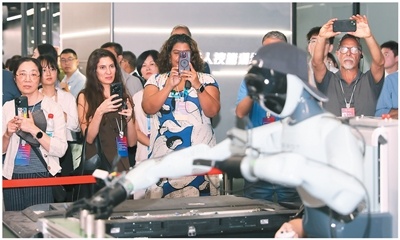 会议开幕前夕,多位与会专家学者以“中国式现代化”为主题来到上海。从上海博物馆东馆的千年珍贵文物,到张江机器人谷的百余台形态各异的人形机器人,参观者沉浸在中国的多元魅力中,游走在古代文明与现代科技之间。