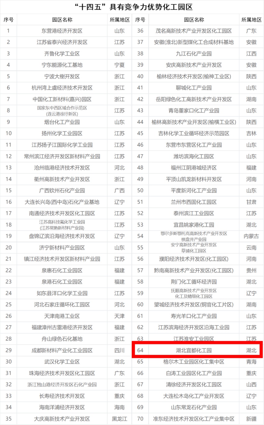 小编:近日,中国化工经济技术发展中心发布了“十四五”期间中国化工园区竞争力研究结果。宜都化工园区综合实力突出。